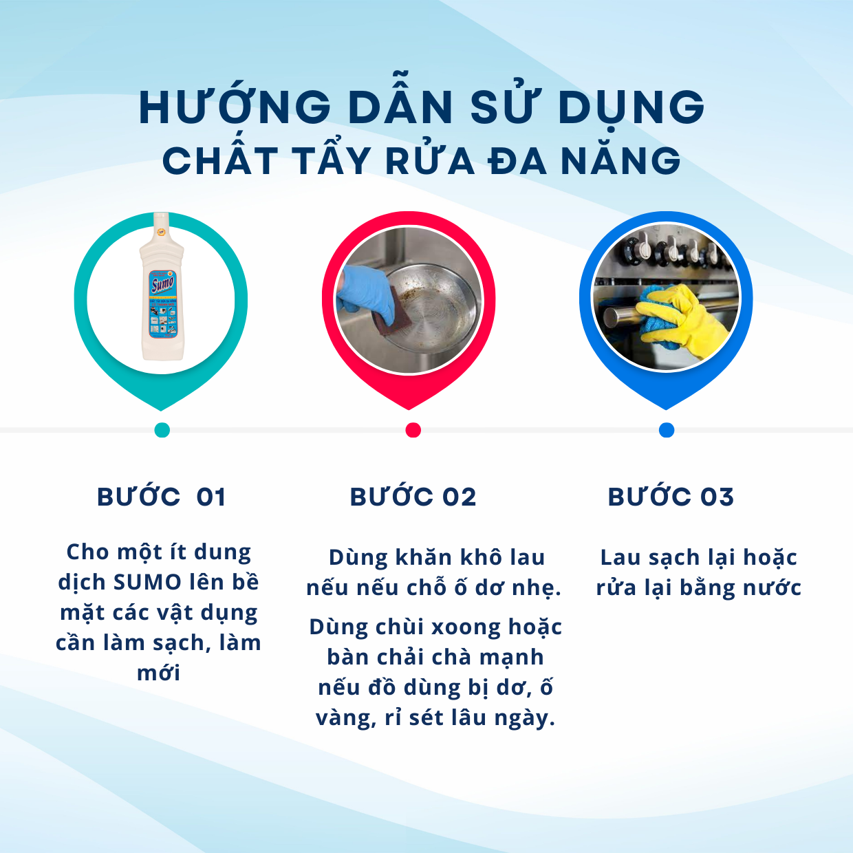 Tẩy đa năng SUMO được thiết kế với công thức làm sạch mạnh mẽ, giúp xử lý hiệu quả những vết bẩn cứng đầu trên nhiều bề mặt. Đánh bay nhanh chóng: