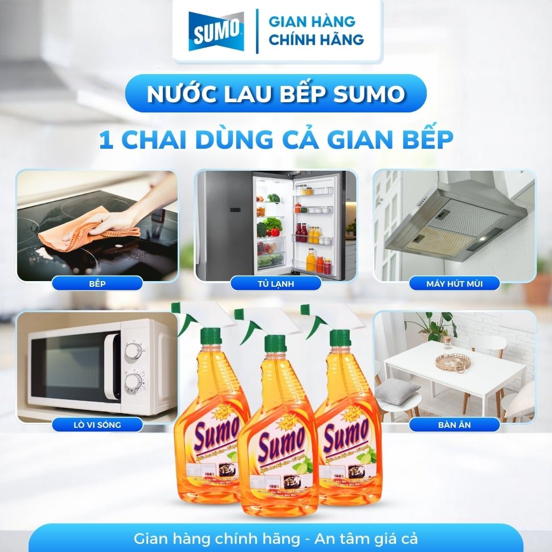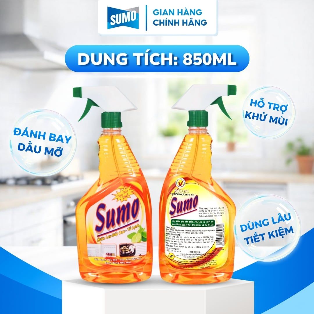 Tên sản phẩm: Nước Lau Bếp Gas và Tủ Lạnh Sumo 800ml (tặng thêm 50ml)